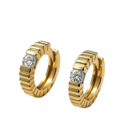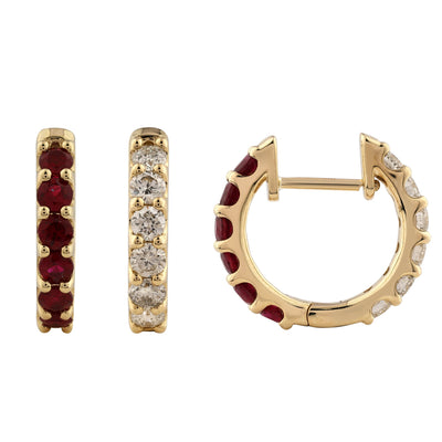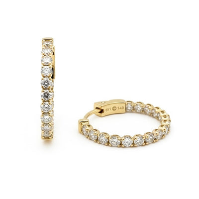 18ct Yellow Gold Baguette and Round Diamond Double Row Huggie Earrings