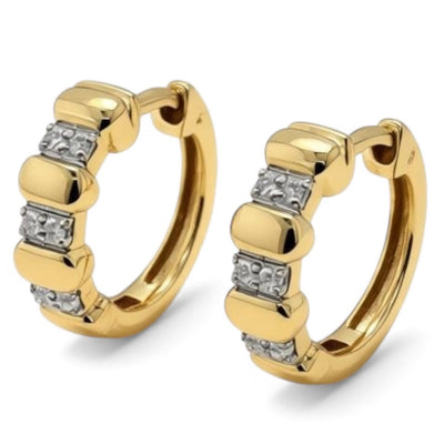 9ct Yellow and White Gold Diamond Crossover Huggie Earrings