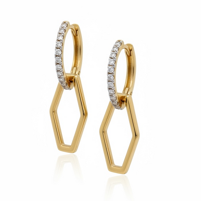 18ct Yellow Gold Floral Design Baguette Diamond Drop Huggie Earrings