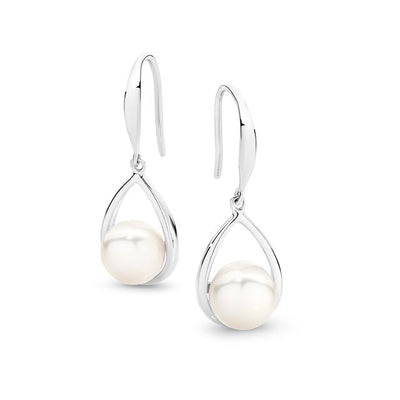 9ct White Gold Freshwater Pearl and Diamond Earrings