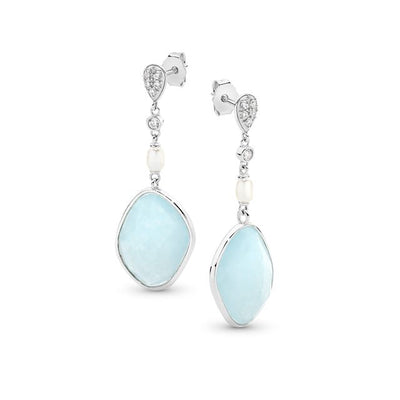 Ikecho Sterling Silver Aqua Chalcedony 3mm Freshwater Pearl Earrings