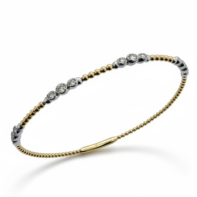 14ct Yellow and White Gold Beaded Diamond Bangle
