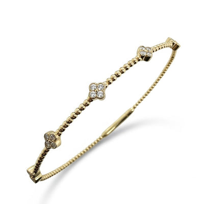 14ct Yellow Gold Beaded Diamond Bangle