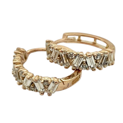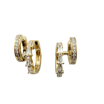 18ct Yellow Gold Floral Design Baguette Diamond Drop Huggie Earrings
