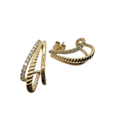 9ct Yellow and White Gold Diamond Crossover Huggie Earrings