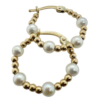 9ct Yellow Gold Freshwater Pearl and Gold Ball Hoop Earrings
