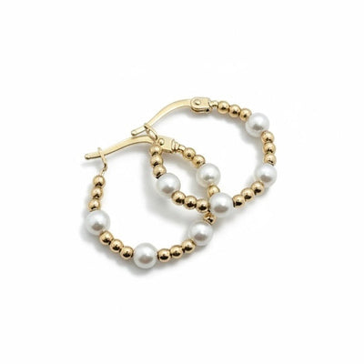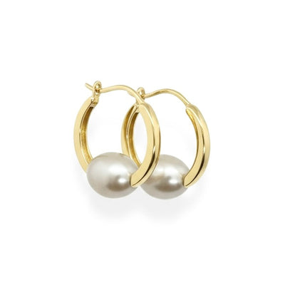 9ct Yellow Gold Freshwater Pearl Gold Hoops