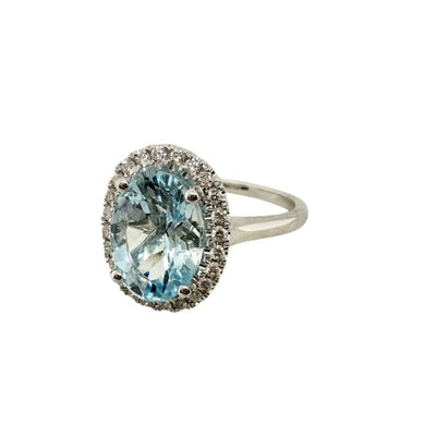18ct White Gold Aquamarine and Diamond Dress Ring
